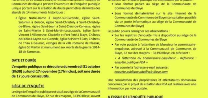 Avis d’enquête publique unique – création de périmètres délimités des abords (PDA)