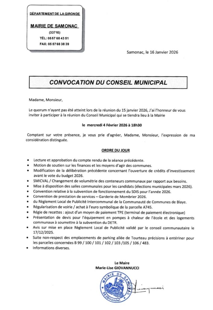 Convocation du Conseil Municipal- 20 novembre 2025